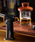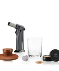 • Includes: 14 oz. lowball glass, Smoker, Fine mesh strainer, Handheld butane torch (fuel NOT included), Tin of oak wood chips
