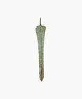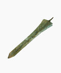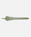 Product: This bronze spearhead is from Luristan, ancient Persia, c. 1200 - 800 BC. It is a long, graceful tapered leaf-shaped blade with thin raised mid-rib and 'rat-tail' tang where it would have been affixed to the spear shaft. Intact with minor chipping. Thick olive-green patina with earthen and mineral deposits overall. Ex D. McKee collection, Olympia, WA. Original owner inherited this piece from his father-in-law who was a visiting professor at the university of Tehran from 1959-1960.