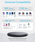 • Universal Compatibility: PowerWave Pad provides 10W output for Samsung Galaxy, 7.5W for iPhone, and 5W for other phones or wireless earbuds (including AirPods).