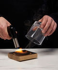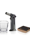 - Includes: 13 oz. lowball glass, authentic American oak whiskey barrel plank, and a handheld butane torch (fuel NOT included)