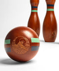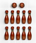 Ten (10) solid 9-in x 3-in Hevea wood pins and two (2) solid 3.15-in diameter Hevea wood balls