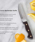 Finish handcrafted cocktails with a professional twist of citrus. Riveted wood with polished exposed grain provides ergonomic support while a curved, double-tipped blade slices segments of your preferred produce into delicate garnishes. Most suitable for oranges, lemons, and limes.