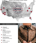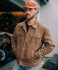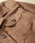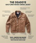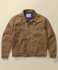 Our 100% American Made Deadeye Waxed Canvas Trucker Jacket is a one-of-a-kind classic. We partnered with the USA's oldest waxed canvas manufacturer on a 9.5oz waxed Oxford weave sailcloth that naturally develops a unique patina with every wear. The patented waxing process reflects the fabric's highs and lows, and permeates it for a soft hand that's surprisingly water resistant. Lined with cozy quilted nylon, this everyday wear will slide right over your underlayers without bunching.