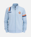 The GPO Cotton Zip Jacket delivers a bold fusion of motorsports heritage and modern edge. Premium brushed cotton offers all-day comfort with a relaxed fit that moves with you. Signature Gulf blue is accented with asymmetric double stripes—one racing from shoulder to chest pocket, the other cutting across the opposite sleeve—like apexes taken at speed. A design that zigs and zags with purpose, balanced yet bold. A versatile collar that can be worn up to protect you from the elements or folded down for a casual, open look. Easy-glide zippers and comfort-edged pockets bring functional performance to a street-ready look.