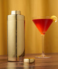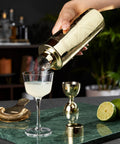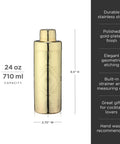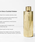 Shake up craft cocktails in eye-catching barware. Our stunning gold cobbler shaker incorporates the classic measured cap and strainer, with an electroplated gold finish and elegant etchings that recall Art Deco architecture.