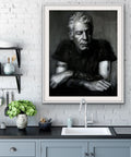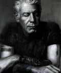 Product: A highly detailed reproduction of Madison's painting of Anthony Bourdain. This style of painting uses a stippling process utilizing thousands of individual tiny brush strokes. This print will truly bring Anthony Bourdain's spirit into your home or office.