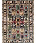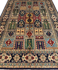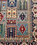 This hand-knotted Afghani Bakhtiari garden rug brings the artistry of traditional Persian garden design into your home. Woven by skilled Afghan artisans, the piece features the classic Bakhtiari garden panel layout, where each compartment holds a unique floral or geometric motif—symbolizing harmony, abundance, and the beauty of nature.