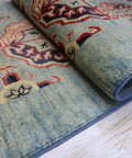 This hand-knotted kazak rug features rich color tones and traditional Afghan weaving. Made with high-quality wool on a cotton foundation, it offers both beauty and durability. Ideal for adding character and texture to entryways, living rooms, or studies.