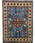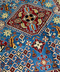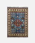 This hand-knotted kazak rug features rich color tones and traditional Afghan weaving. Made with high-quality wool on a cotton foundation, it offers both beauty and durability. Ideal for adding character and texture to entryways, living rooms, or studies.