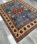Hand-Knotted Afghani Kazak Wool Rug – 5’0″ x 6’10″