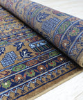 Afghan rugs are celebrated worldwide for their exceptional craftsmanship and durability. This Zerkhaki rug, created using traditional Turkish or Persian knotting techniques, is designed to withstand the test of time. Each piece is sourced directly from Afghan artisans, ensuring authenticity and attention to detail. The natural dyeing process imparts unique variations in color, making every rug truly one of a kind.