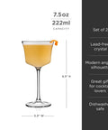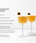 Perfect for small drinks with a lot of flavor, these sour glasses are an angled cousin of the coupe glass. The stemmed design and sparkling crystal make it an elegant way to enjoy a Whiskey Sour, Amaretto Sour, or any cocktail served up.