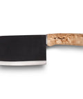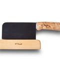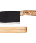 The Roselli Chinese Chef Knife is a cleaver type knife with a carbon steel blade. Large universal knife in traditional Chinese style. Forged carbon steel blade and a curly birch handle. Comes with a birch knife rack.