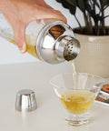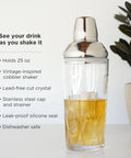 This vintage-inspired cobbler cocktail shaker is perfect for anyone who loves classic decor. The elegant lead-free cut crystal tumbler illuminates the cocktail inside, while the built-in stainless steel strainer includes a silicone seal.