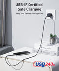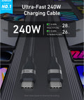 - Super-Fast 240W Cable: This 240W USB-IF certified cable can charge your 16-inch MacBook Pro (2023) to 50% in just 28 minutes or your iPhone 15 Pro to 50% in 26 minutes.
