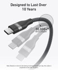 Ultra-Durable Charging Cable: With a 30,000+ bend lifespan and the ability to withstand 220 lbs without breaking, this cable is built to last over 10 years.