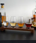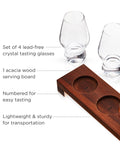 Indulge in an evening of whiskey or gin tasting with this elegant Spirit Flight set. This set includes four 8 oz. crystal tumblers and a lightweight but sturdy wooden flight board so you can transport and enjoy your liquor with ease.