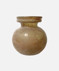 Product:  An excellent Roman golden yellow glass jar, 3rd - 4th Century AD.  Free-blown with an indented bottom and short neck with funnel mouth.  Well-preserved with light deposits. A marvel of preservation to have survived since antiquity.  Ex Lecker collection, FL, acquired in the Holy Land in the early 1980's.