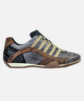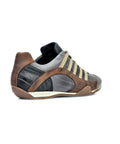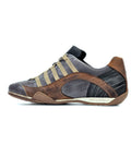 The Grandprix Sneaker is 100% leather, hand-crafted in Italy with scrutinous workmanship in a small factory. It’s designed to be the perfect driving shoe, and the buttery soft and supple leather is comfortable for all-day wear. The casual luxury quality fits in anywhere, but the eye-catching colors and design means you’ll never just blend in. Wear it anywhere – car meets, the track, work, events, or a nice dinner. The pure natural rubber sole provides stability and comfort, with a bottom profile modeled after car tires. Side tabs wrap the highest wear area on the sides for extra protection. A rounded racing-inspired heel gives a perfect grip and allows for precise action on the pedals, whether you use two or three.